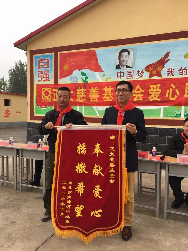 南漳河小學(xué)感謝正大慈善基金會的愛心善舉,并贈送錦旗。