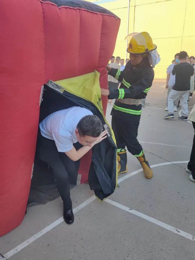 曲建華副總裁親自帶頭體驗(yàn)逃生帳篷項(xiàng)目