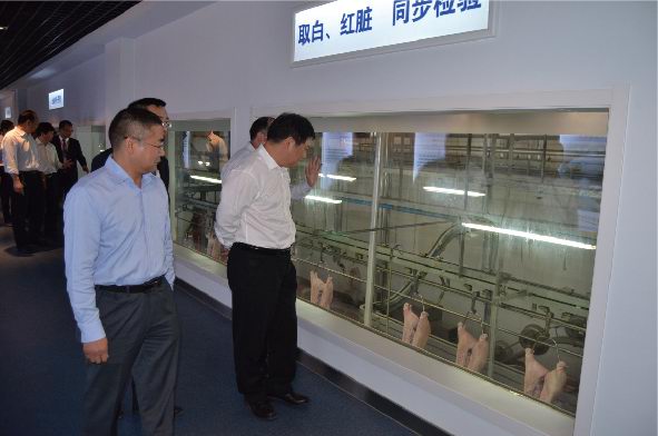 鮑市長一行首先通過參觀廊參觀了公司生產(chǎn)現(xiàn)場。鄭寶振副董事長對洛陽市鮑市長一行蒞臨洛陽正大指導(dǎo)表示歡迎,并對洛陽市政府一直以來對正大集團(tuán)在洛陽項(xiàng)目的支持表示感謝。在公司三樓會議室,喬光斌總經(jīng)理匯報(bào)了洛陽正大生產(chǎn)經(jīng)營、項(xiàng)目建設(shè)規(guī)劃、食品安全管理、市場運(yùn)作模式、公司發(fā)展愿景等相關(guān)工作情況;鄭寶振副董事長表示:洛陽正大食品有限公司是集團(tuán)投資建設(shè)的***家生豬屠宰和豬肉深加工項(xiàng)目,集團(tuán)對該項(xiàng)目高度重視,利用正大集團(tuán)優(yōu)勢,圍繞洛陽正大100萬頭生豬屠宰項(xiàng)目,在洛陽地區(qū)打造從玉米種植、飼料加工、良種豬培育、商品豬養(yǎng)殖、屠宰分割、肉制品精深加工、冷鏈物流、連鎖專賣為一體的全產(chǎn)業(yè)鏈發(fā)展模式,確保產(chǎn)品的安全可追溯,下一步要高標(biāo)準(zhǔn)建設(shè)洛陽正大深加工項(xiàng)目,并將在洛陽周邊偃師、宜陽、伊川、孟津等區(qū)域拓展安全豬源養(yǎng)殖基地,洛陽正大食品有限公司向洛陽市民提供安全、健康、營養(yǎng)、美味的正大食品,希望市政府在洛陽正大深加工項(xiàng)目建設(shè)和生豬養(yǎng)殖建設(shè)方面給予支持和幫助。